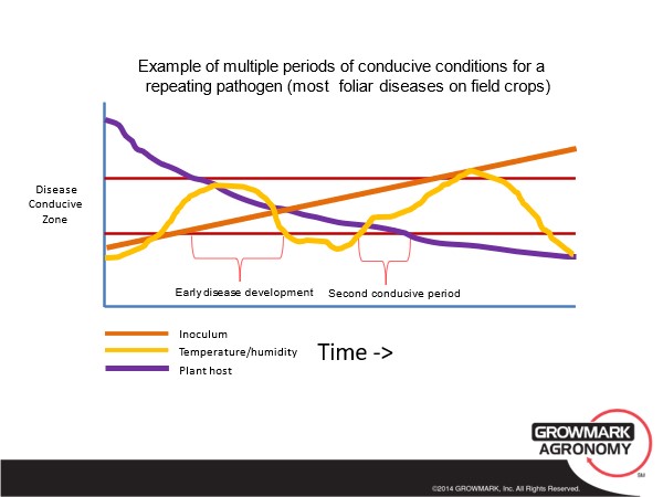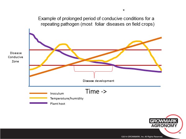- Foliar diseases develop over time and the disease cycle repeats. The number of repeating cycles plays a large role in the ultimate impact of the disease on yield